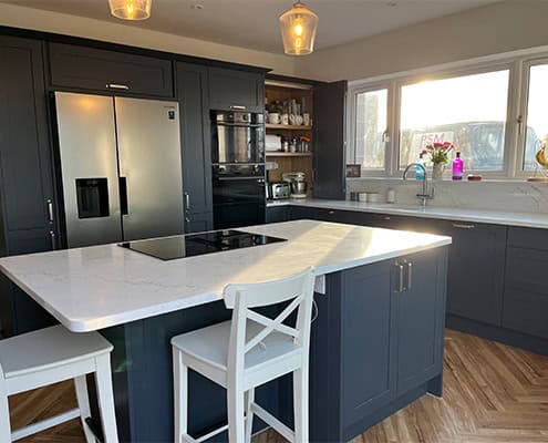 At PSM Kitchens, we work with you to design the kitchen of your dreams using made-to-measure bespoke, individual units. From that point, we can either see the project through to completion for you, using a team of local, trusted tradespeople – or arrange for your kitchen to be supplied only.
